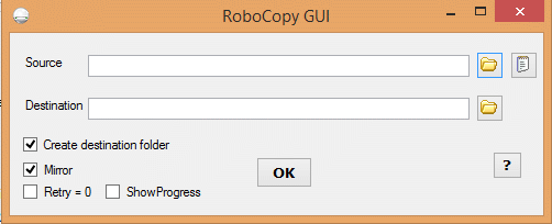 2014 - v1.2, opt out for the progression display (which leads to cluttered log files). On may also choose a directory or a file to copy (no mirror option in file mode, obviously)